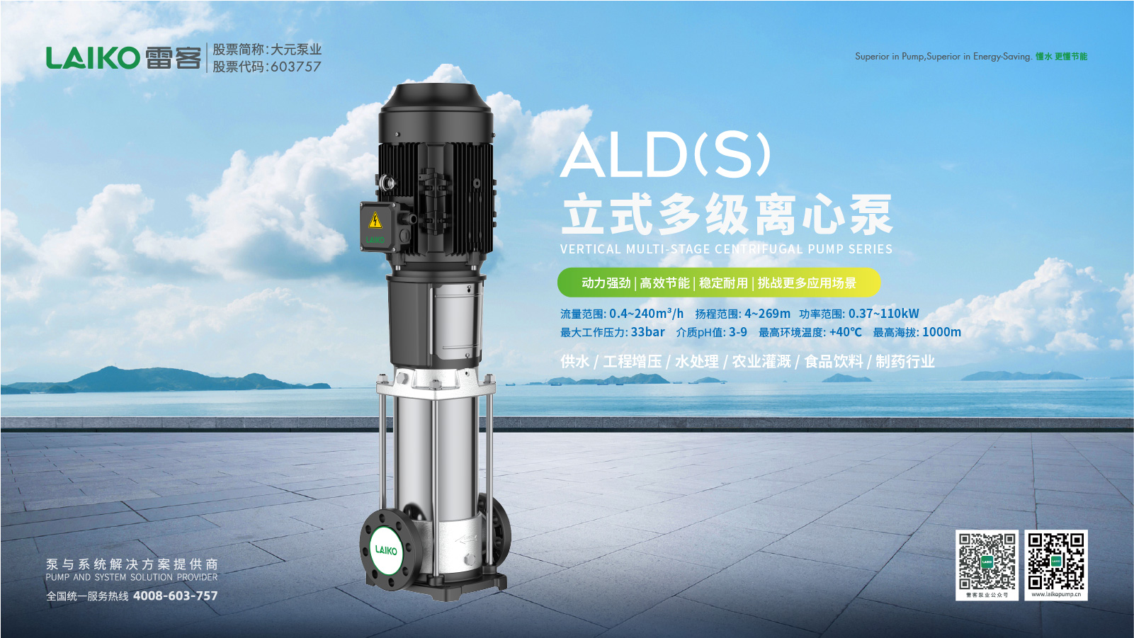 ALD/ALDS系列为高效率非自吸立式多级离心泵(以下简称泵),具有节能、低噪、环保及结构紧凑,外形美观,重量轻,使用维护方便、可靠性高等特点;关键过流部件采用不锈钢冲压、精密激光焊接、不锈钢精密铸造等工艺。