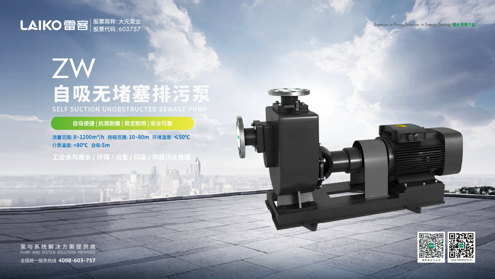 ZW系列自吸式无堵塞排污泵是在反复研究国内外同类技术的基础上开发成功的一种结构新颖的产品。该泵集自吸和无堵塞排污于一体,采用轴向回流外混式,并通过泵体、叶轮流道的独特设计,既可像一般自吸清水泵那样不需要安装底阀和灌引水,又可吸排含有大颗粒固体和长纤维杂质液体。该泵与国内同类产品相比,具有结构简单、自吸性能好、排污能力强、高效节能、使用维修方便等特点。在排污泵系列产品中属国内首创。各项技术性能指标居国内领先,达到国际先进水平,具有广阔的应用市场和发展前景。